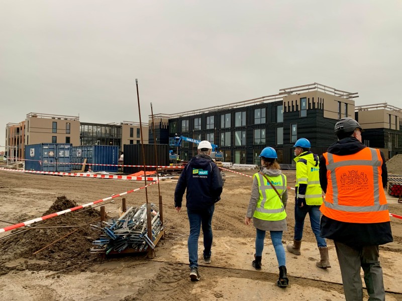 Een grote groep bestuurders (wethouders uit de MRA-regio, twee gedeputeerden Jelle Beemsterboer en Esther Rommel, corporatiebestuurders, managers vanuit het Ministerie van Volkshuisvestiging en Ruimtelijke Ordening en statenleden van de provincie Noord-Holland) kwamen vrijdag 12 december op bezoek bij de nieuwste uitbreidingsbuurt van Heemskerk: Tolhek-Oost.