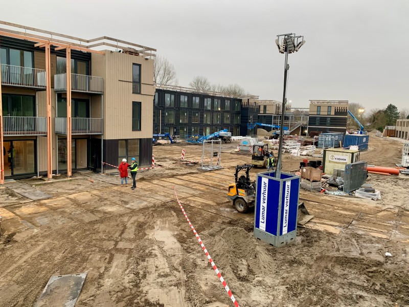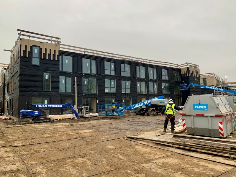 Binnen no time kwam hier, dankzij de voortvarende inzet van corporatie Woonopmaat en voormalig wethouder Ani Zalinyan (nu lid van de Tweede Kamer), een klein buurtje gemaakt van modulaire woningen van biobased materialen en permanente kwaliteit. Bij de start was het plan een tijdelijke buurt van 50 eengezins- en meergezinswoningen te realiseren. De gemeente bewoog flink mee om de business case haalbaar te maken en verlengde de duur van plaatsing van 15 naar 30 jaar tijd. Daarnaast werd er ruimte gemaakt voor veel groen en een natuurlijke wadi in het midden van de buurt.