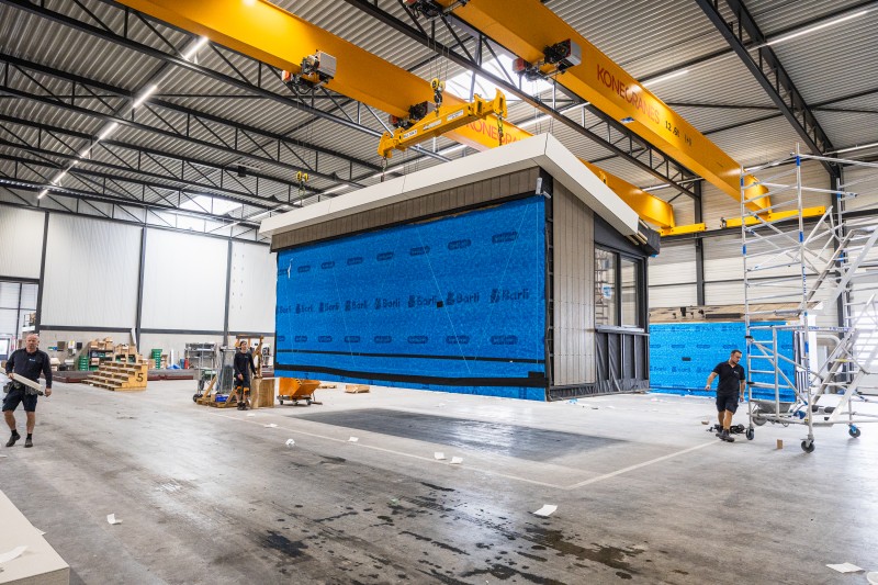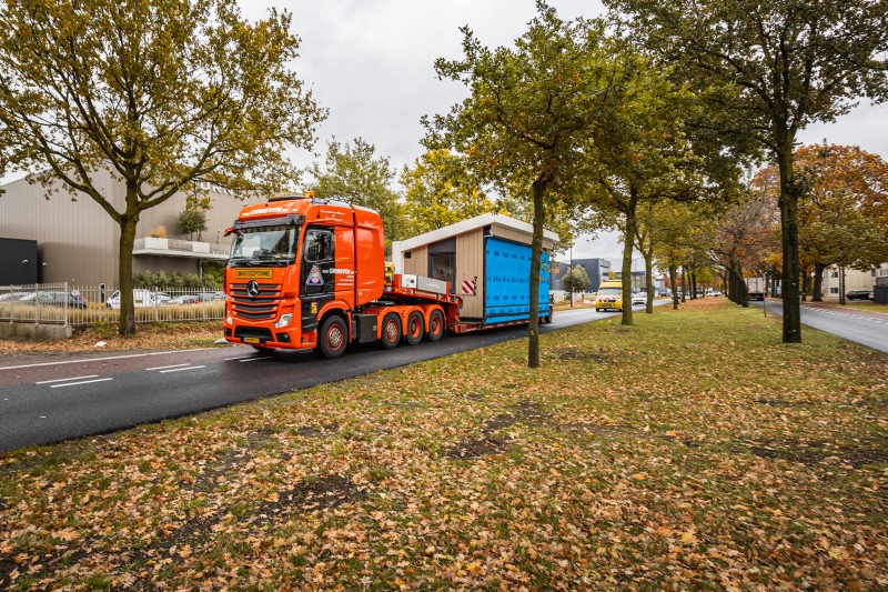 Een korte rit van de woningfabriek in Uden naar nieuwe thuis