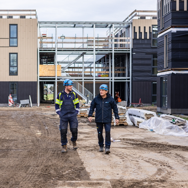 Erwin heeft veel contact met uitvoerder Tycho van Cooten en voorman Robert van Boekel. Robert leidt op de bouw de buitenploeg. “We hebben veel eigen mensen op dit project”, vertelt hij. “Die spreken dezelfde taal en snappen wat ze moeten doen. Daardoor loopt het op rolletjes.”